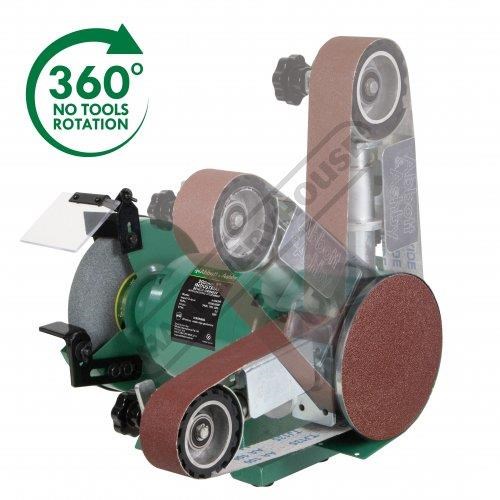 Linisher can be swapped over to left side of grinder if preferred