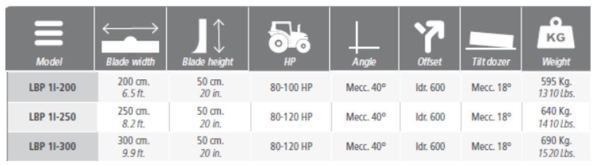 - Blade Width: 300 cm. 9.9 ft