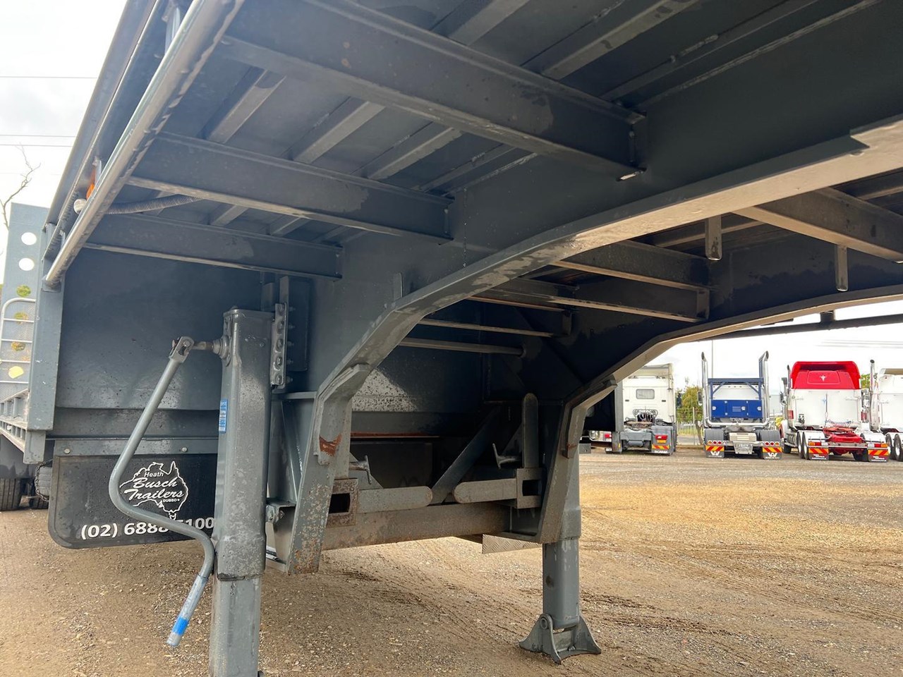 44'6" Long, Container Pins, Road Train Rated with Ringfeder & Air & Electrics to Rear, Electric/Hydraulic 3m Ramps, York Axles on Spring Suspension, Jost Landing Legs, 10 Stud Chrome Wheels, 255/70R22.5 Tyres, 1020mm Deck Height, 2 x LH Side Toolboxes, Water Tank, Front & Rear Loading Racks, Spare & 2 x Carrier, Very Tidy Trailer with Road Train Rating.