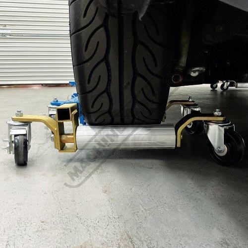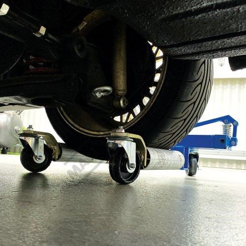 The low friction, with 360° caster wheels lets you spin, side load, and position the car without damaging the floor or the car, faster and safer than floor jacks and at a fraction of the cost of electric carts.