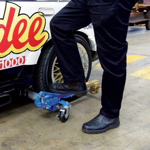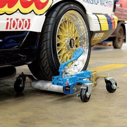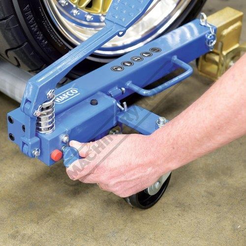 There's no jack like a VJ-680 jack. Its twin rollers slide around the tire and squeeze upward, lifting the tyre smoothly off the ground in seconds with a few pumps of the hydraulic foot pedal.