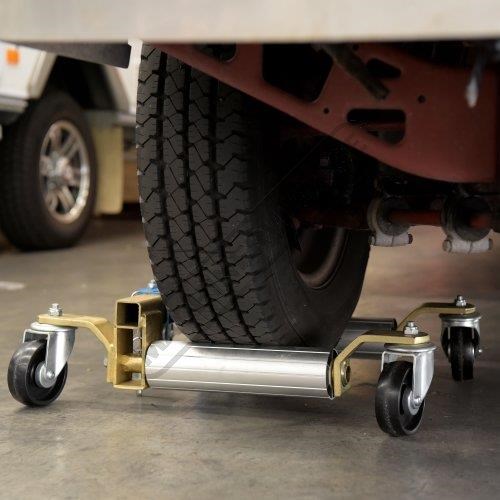 The VJ-680 Vehicle Positioning Jacks will save you time and money; the portable hassle free jack-dolly combo lifts cars in seconds, and then allows you to move it effortlessly across a floor. NO MORE four-person crews straining to move a car. NO MORE crushed oil pans or unnecessary damage.