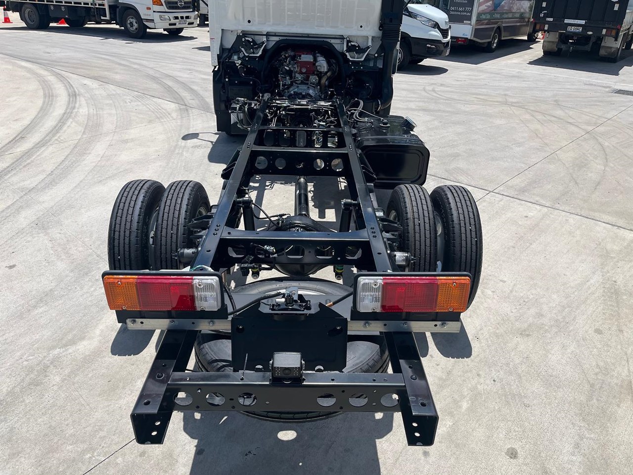 This Hino 616 sits on a 3430mm wheelbase and has a 150hp turbo diesel 4-cylinder engine combined with a proper automatic 6 speed transmission.