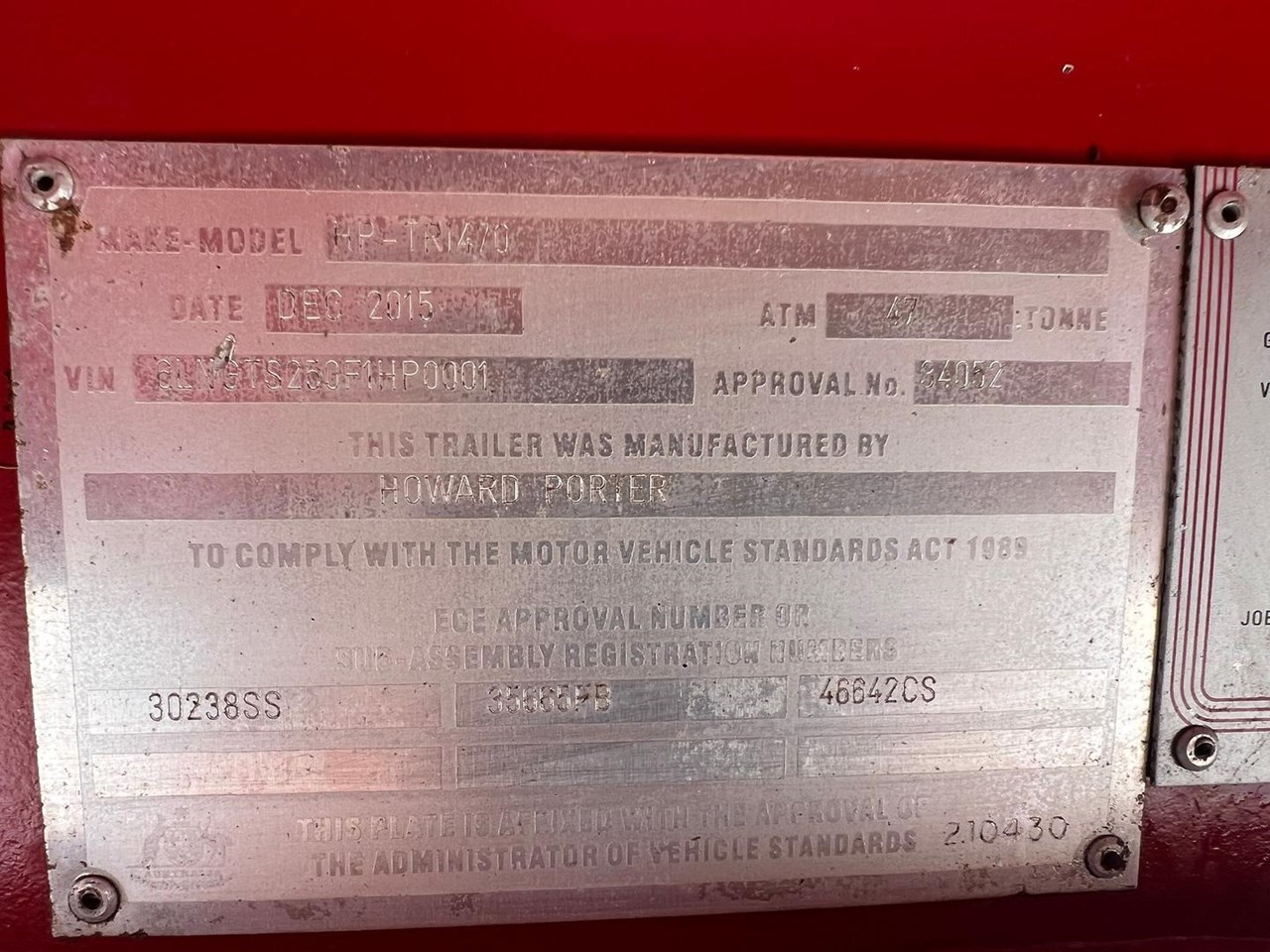 | Title | HOWARD PORTER TRI AXLE DROP DECK WITH BI-FOLD RAMPS |