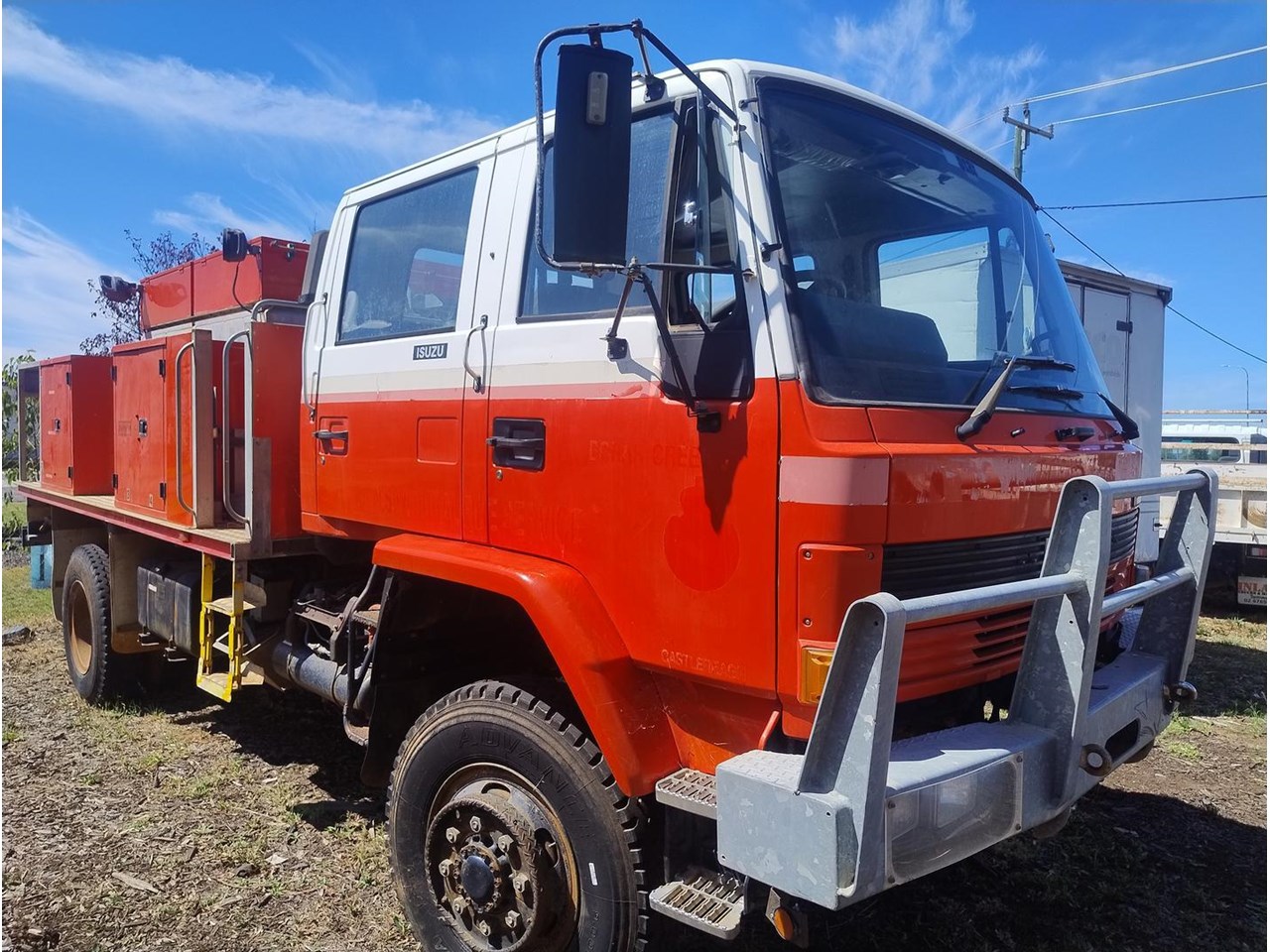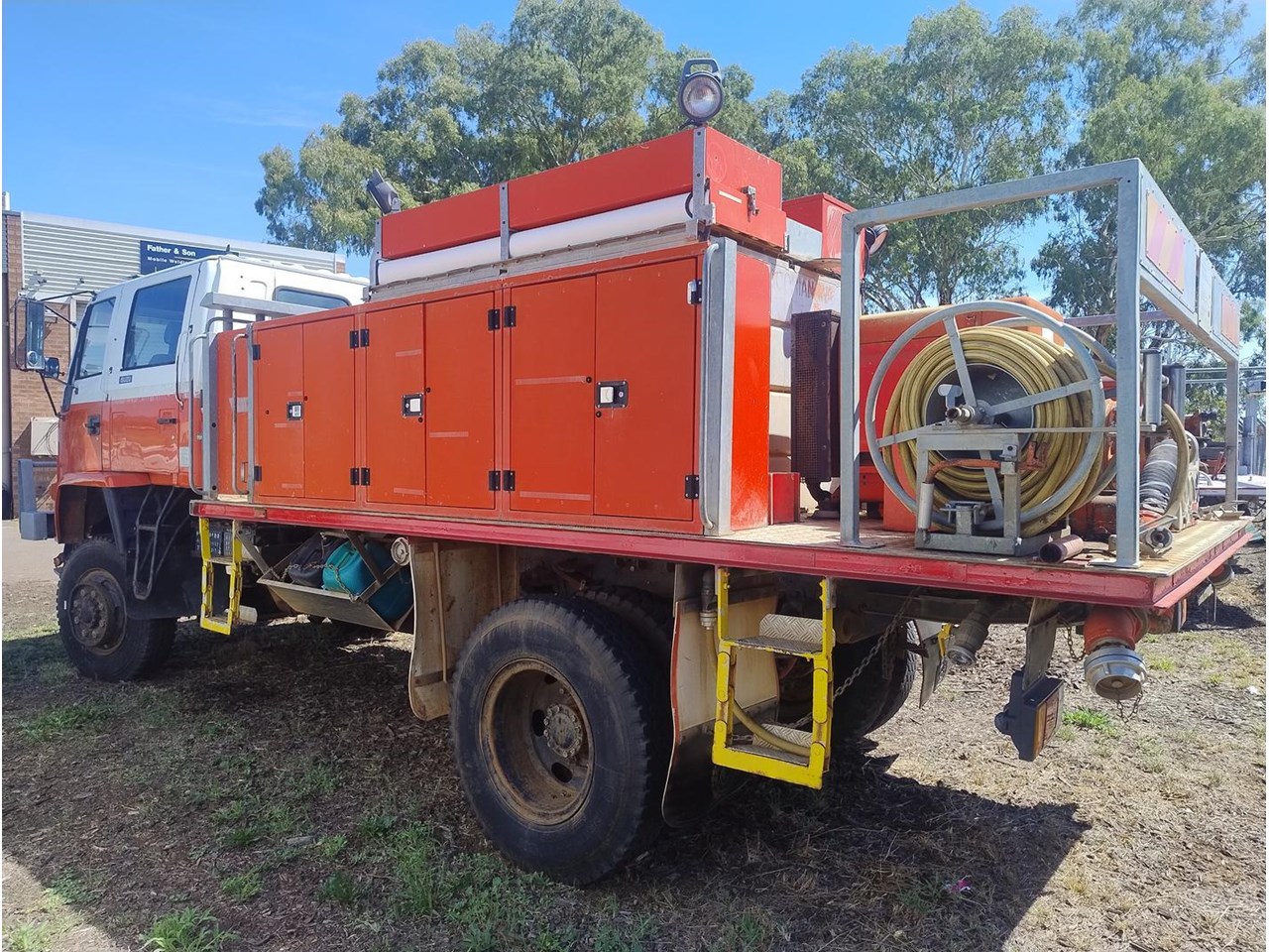 1994 Isuzu FTS 700 4x4 Crew Cab Fire Truck, 7 seats, high and low range 4x4, fully equipped fire truck, Gaam pump powered by Hatz diesel motor, two galvanised hose reels with hoses and fire nozzles.