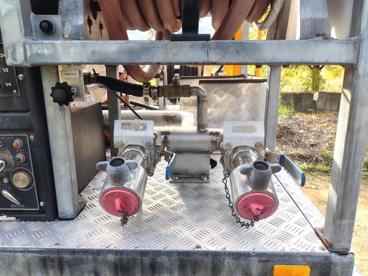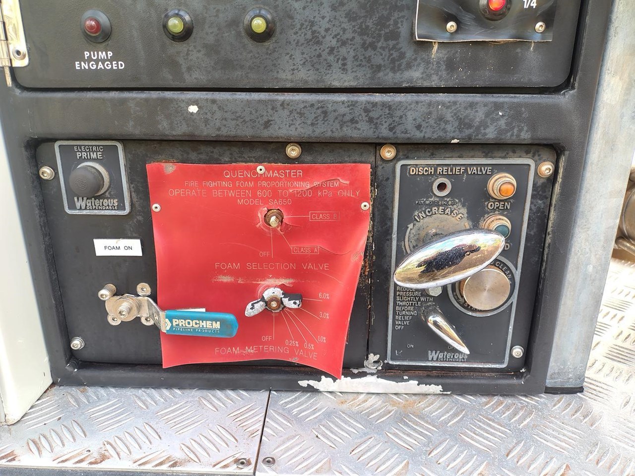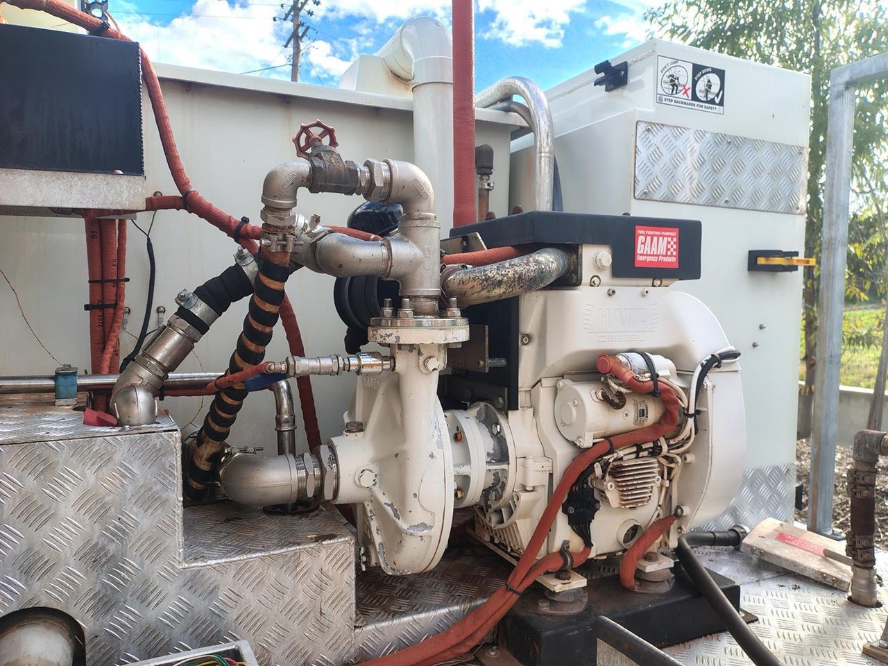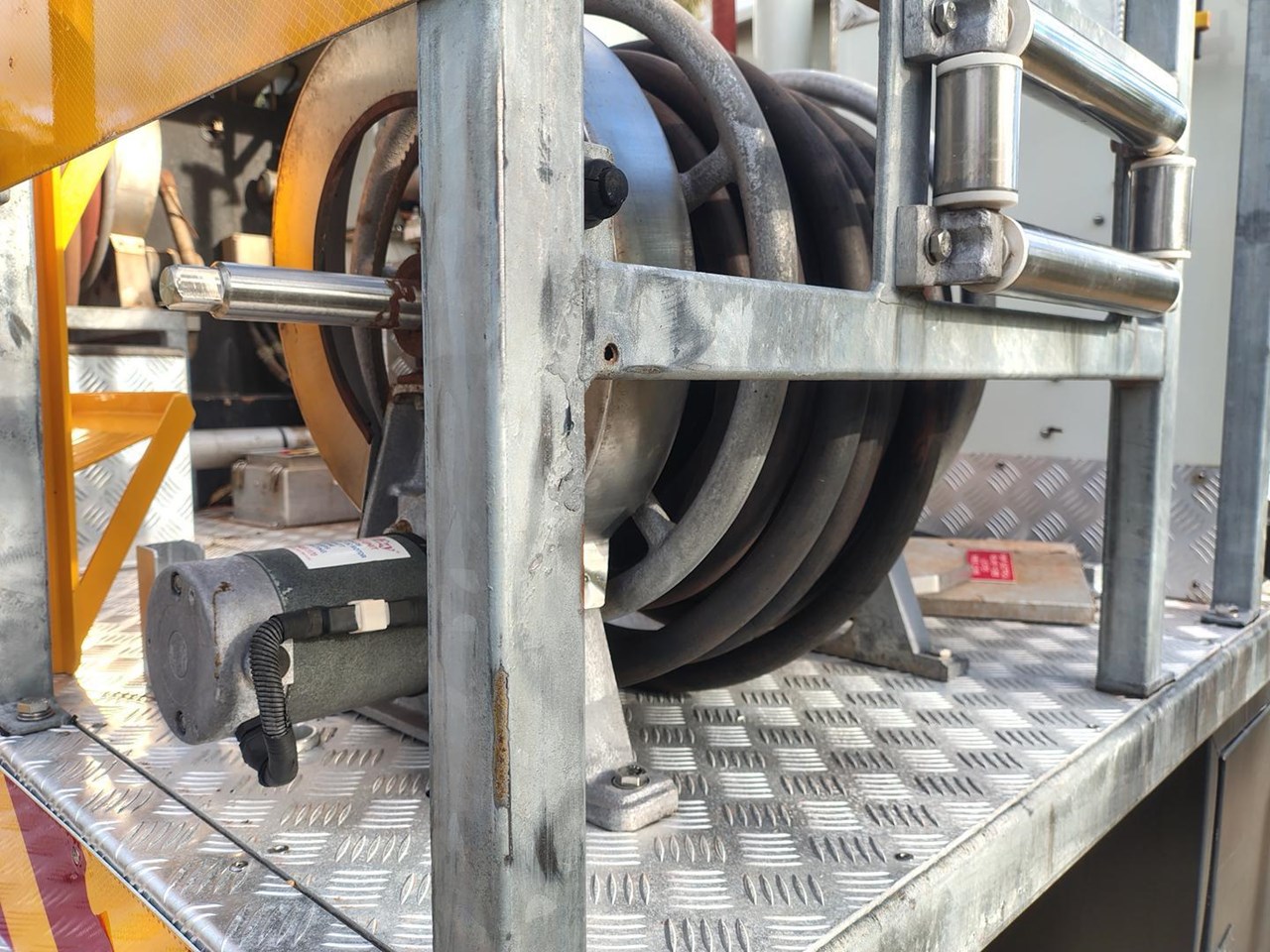 Truck and crew fire protection, auto rewind hose reels, foam application.