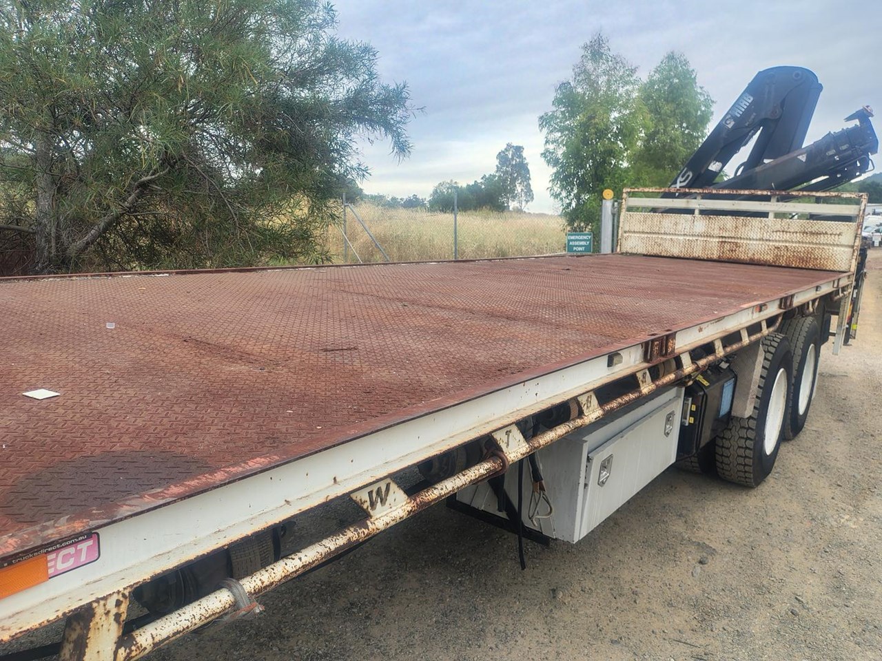 Also available 2008 Mitsubishi FV500 6x4 with rear mounted crane and running rope attached
