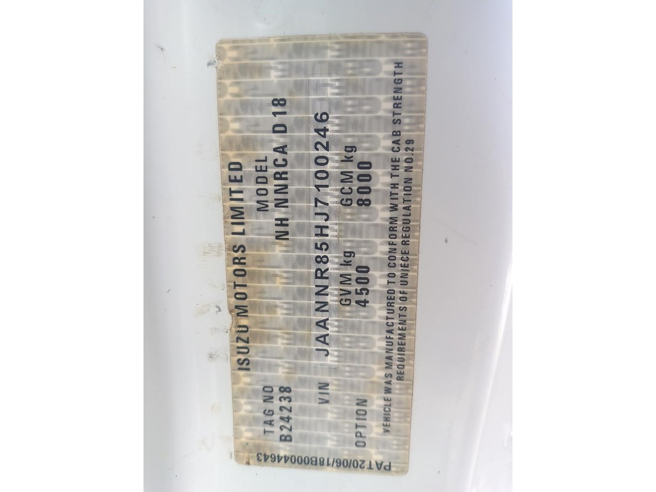 | Title | 2018 ISUZU NNR45-150 CREW CAB |