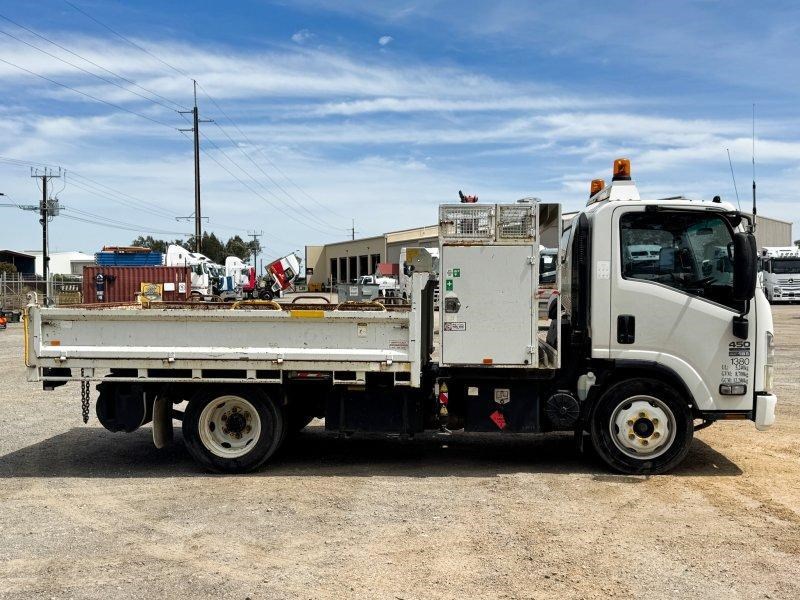 Low-kilometre Isuzu NQR crane / tipper combo fitted with Fassi M20A.13 crane and versatile tipper body - perfect for trade, site, or light construction work.
