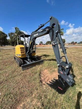 2020 John Deere E36ZS Open Canopy Compact Excavator - Elite Double Locking Hydraulic Quick Hitch & GP Bucket. Machine in great condition. Located in Geraldton.