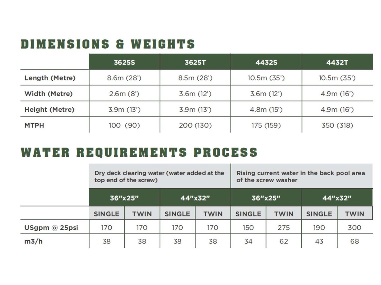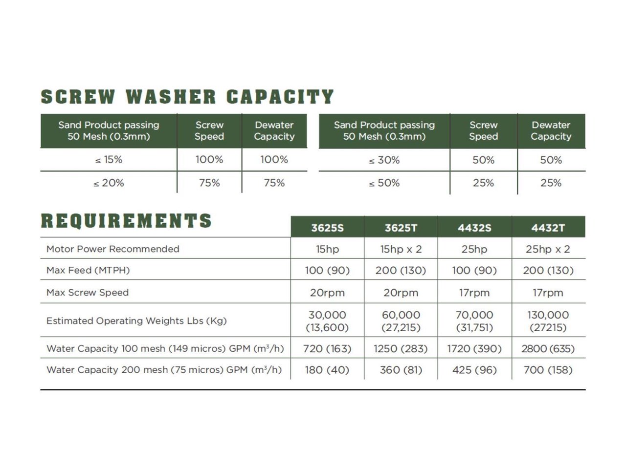 | Model | 3625/4432T FINE MATERIAL WASHER |