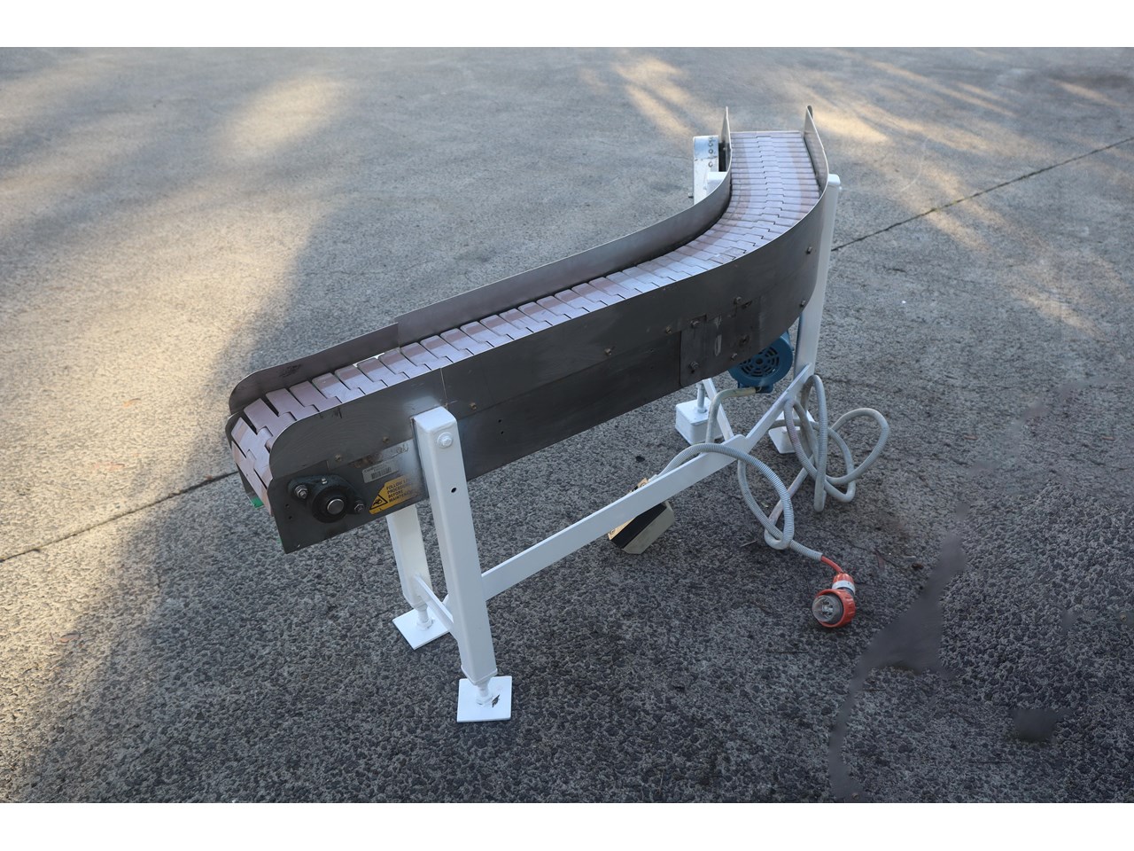 STAINLESS STEEL CURVED CORNER MOTORISED CONVEYOR 1.65M TRAVEL