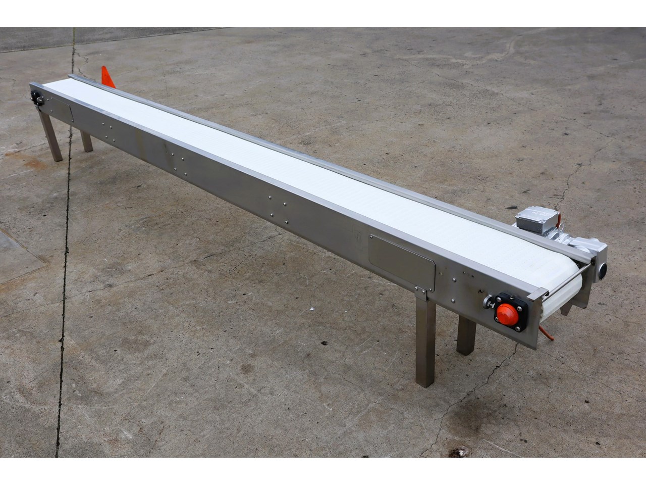 This stainless steel flat conveyor is in excellent condition. Designed for smooth and hygienic product transfer in food processing, packaging, or light industrial environments etc.