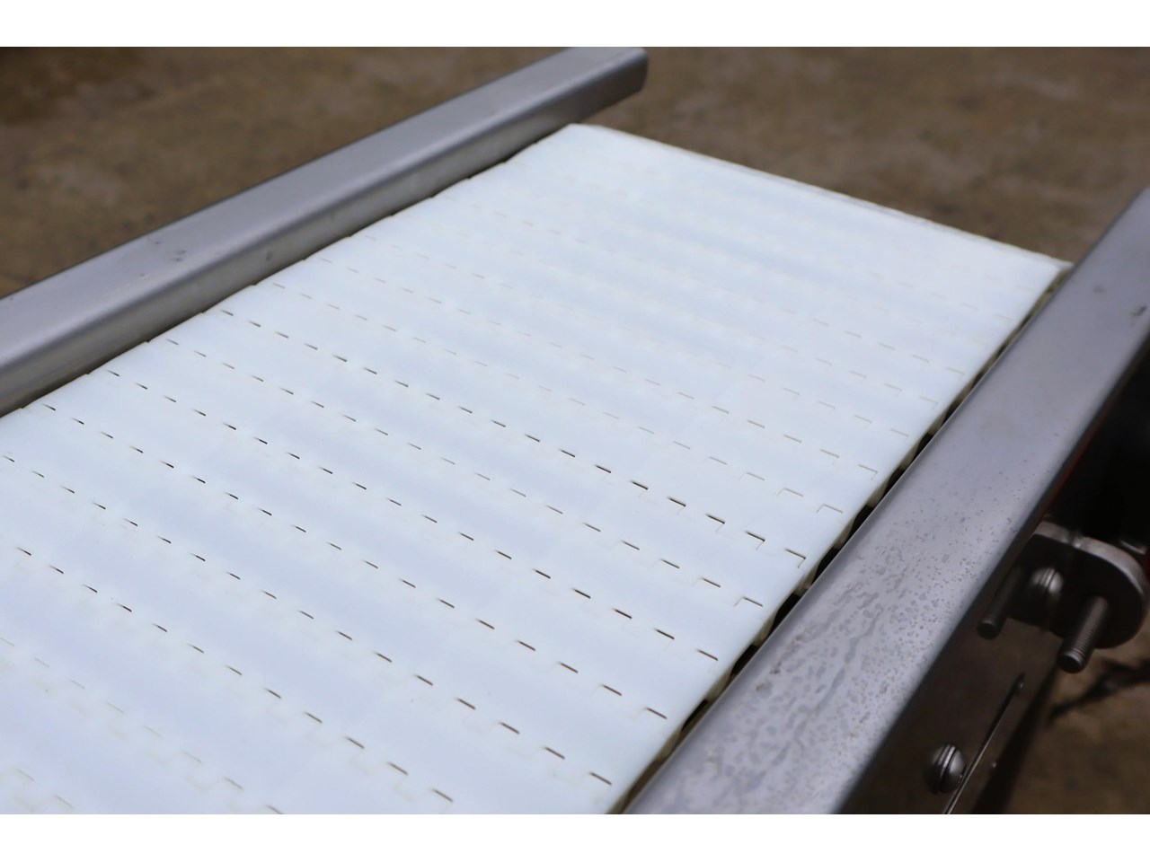- White modular belt for hygienic, food safe operation