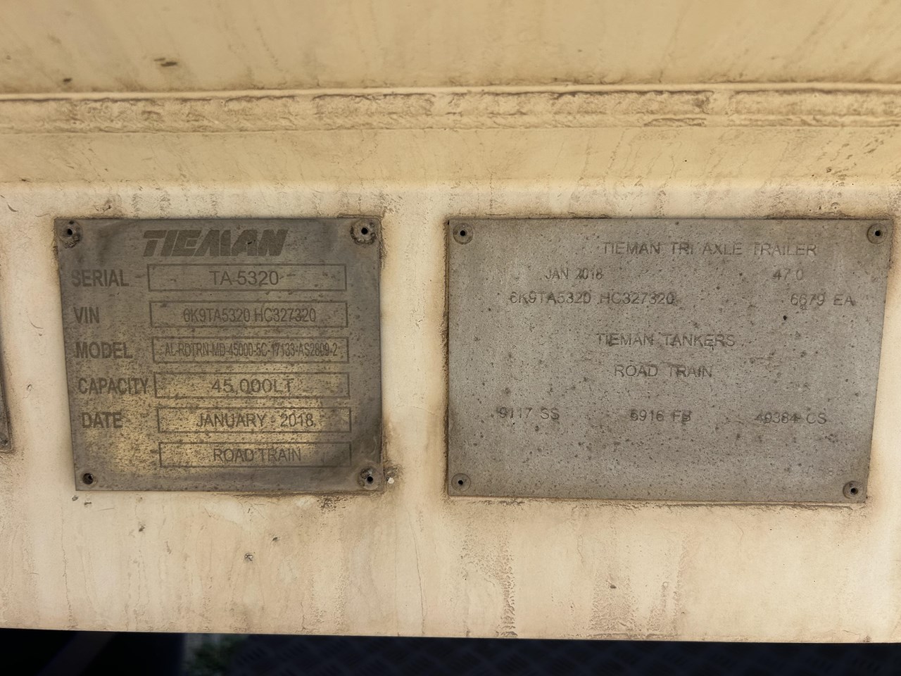| Title | 2018 TIEMAN ROAD TRAIN LEAD FUEL TANKER |