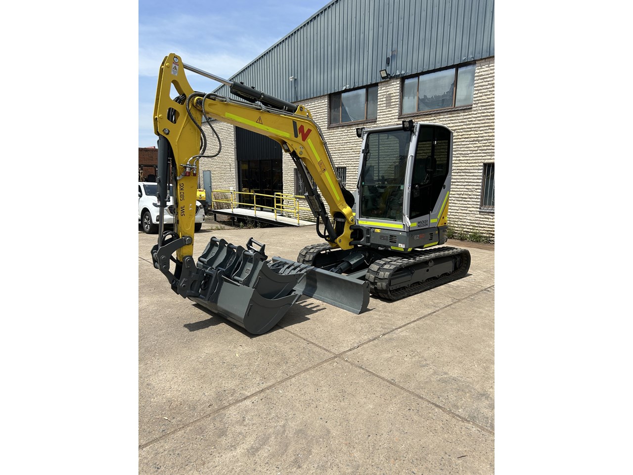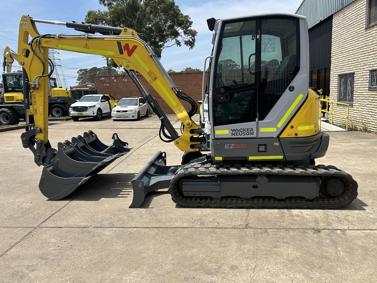 Excellent Condition Wacker Neuson EZ50 5.5tonner with full civil spec fitout. Fitted with Genuine Wacker Neuson Tilt Hitch, full set of buckets and Ripper, with a low 1452 hours. The Wacker Neuson EZ50 is extremely powerful and versatile with unique 3 pin bucket linkage providing industry leading rotational torque and 200 degree of rotation. Won't disappoint.