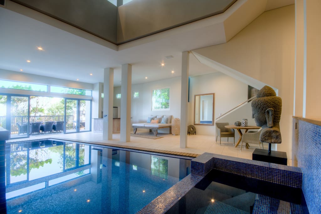 Not only is this place massive and has beach views it also has its own indoor pool.