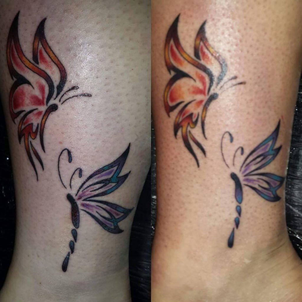 Karly Rachelle: Bestmate and my matching tattoos. I'm the butterfly and she's the dragonfly. It was her 4th tatt and my first