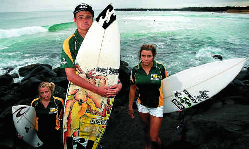 Brodie Doyle, of Rainbow Bay, Codie Klein, of Kingscliff, and Mitch Parkinson, of Coolangatta, best of mates, join a strong team of 12 surfers.