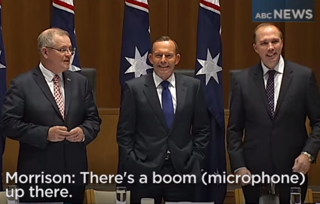 Social Services Minister Scott Morrison then pointed out to both men that there was a microphone overhead.